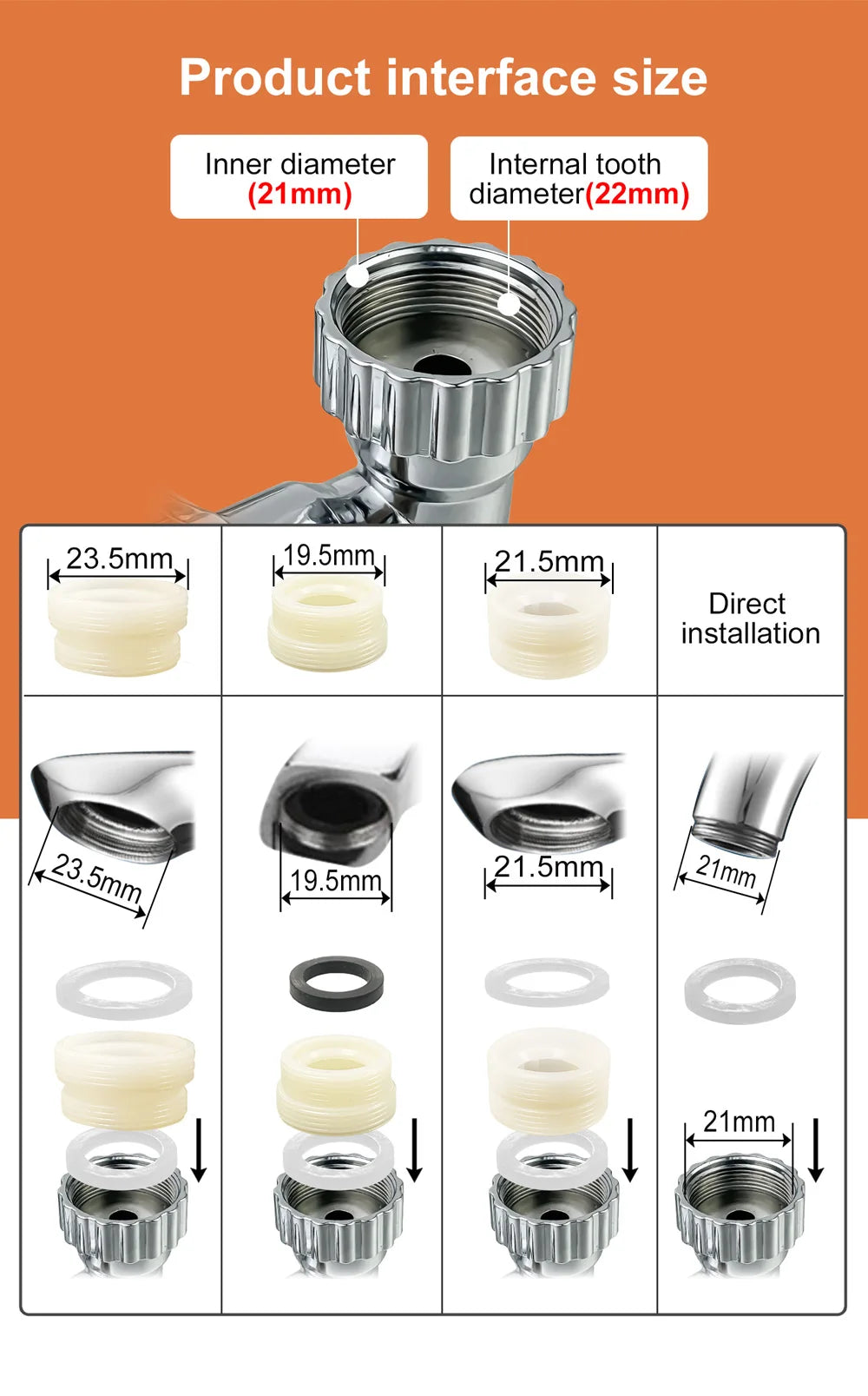 【Easy to Install】Sink faucet sprayer attachment is easy to set up and maintain, and it's a great long-term option for filtering water. Simply unscrew the aerator from the threaded tip of the faucet and replace it with this 1080 rotatable faucet. Please measure the faucet diameter before purchase.