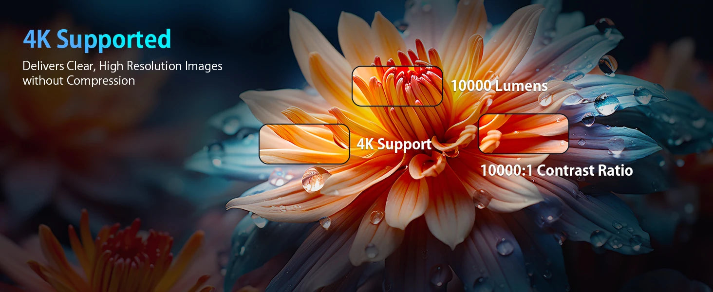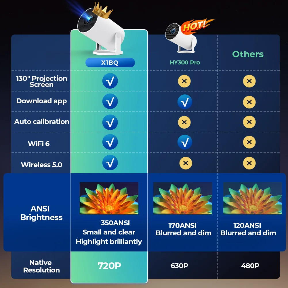 ✔️Native 720p and 4K Supported: Enjoy vibrant and sharp visuals with native 720p resolution and 4K support. The X1BQ brings you deeper blacks, brighter whites, and enhanced detail, making it perfect for movies and gaming on a screen up to 130 inches. (Note: Ensure 4K devices, such as a TV stick, are connected via HDMI for video playback. Videos labeled as 4K will display at a native resolution of 720P, often termed '4K supported').