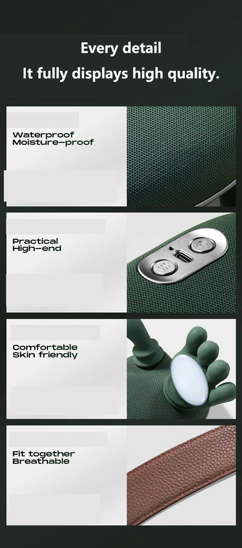 4.User-friendly design:neck shoulder massage pillow has 2 wearing options for choosing: handheld or wearing with the straps, making it suitable for various use situation.This neck massager is lightweight, and it has compact design.
