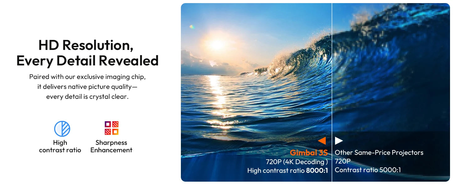 HD projection with 4K compatibility – Experience stunning visual effects with this mini projector featuring 1080P resolution, 4K support, 12000 lumens of brightness, and a projection screen. From 40–150 inches. Transform any room into a personal home theater.